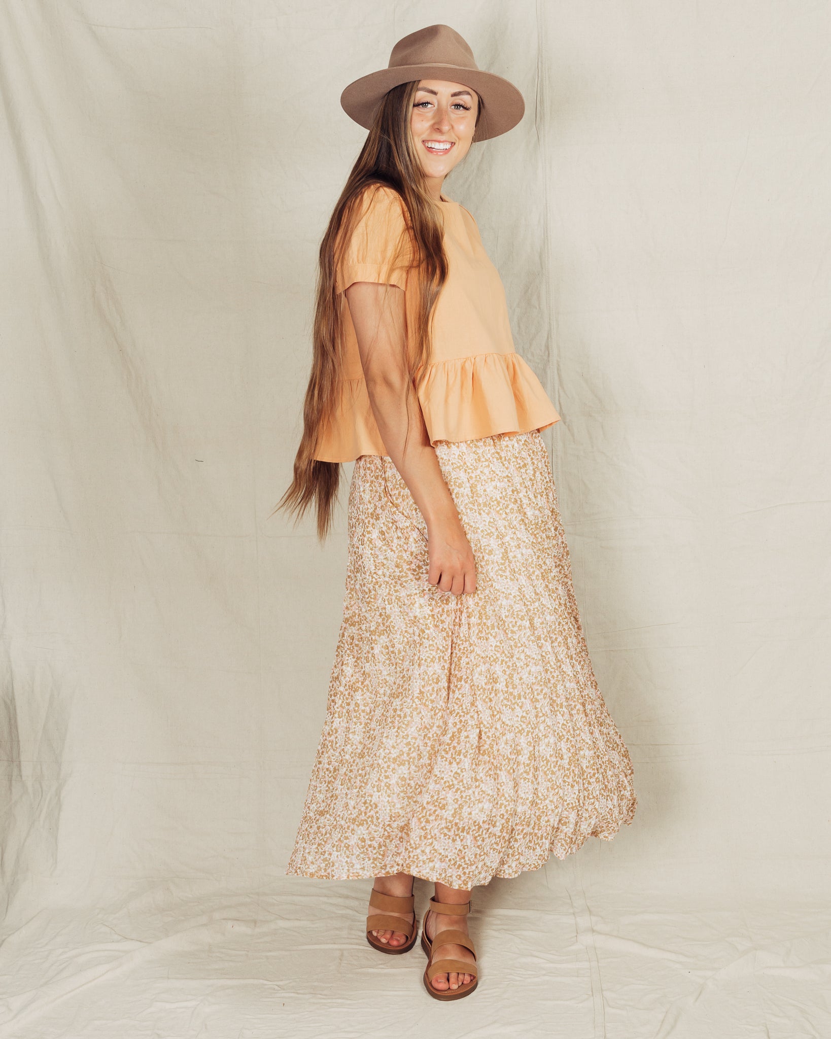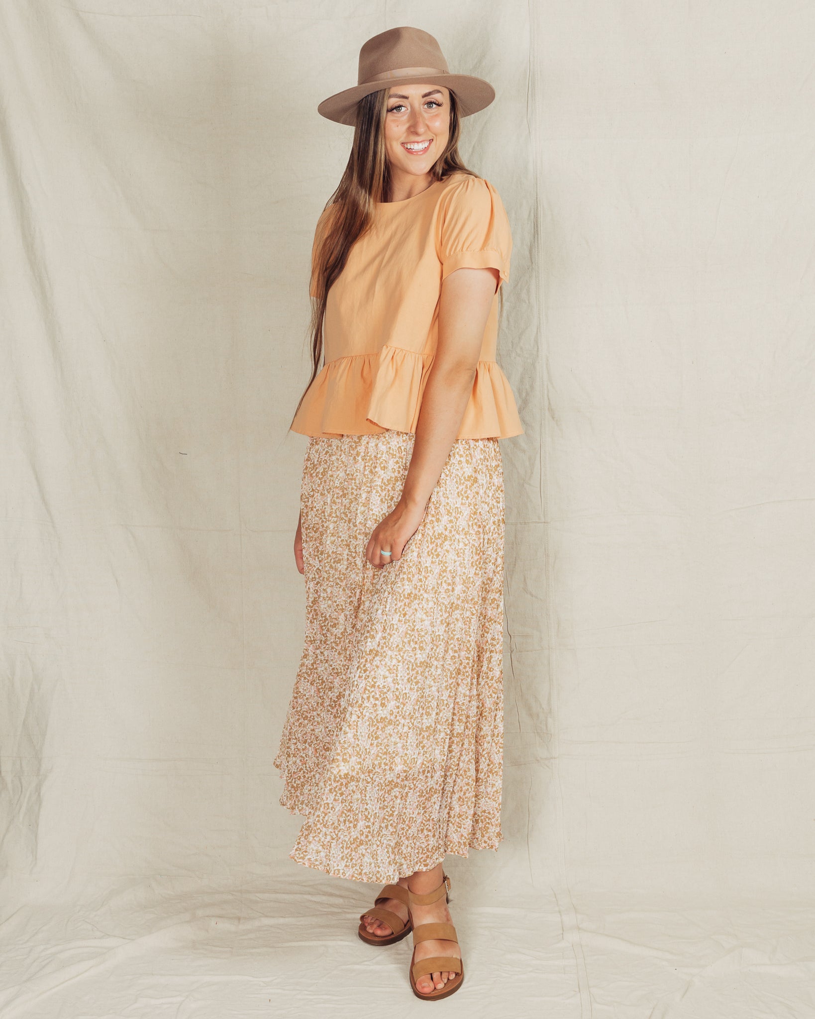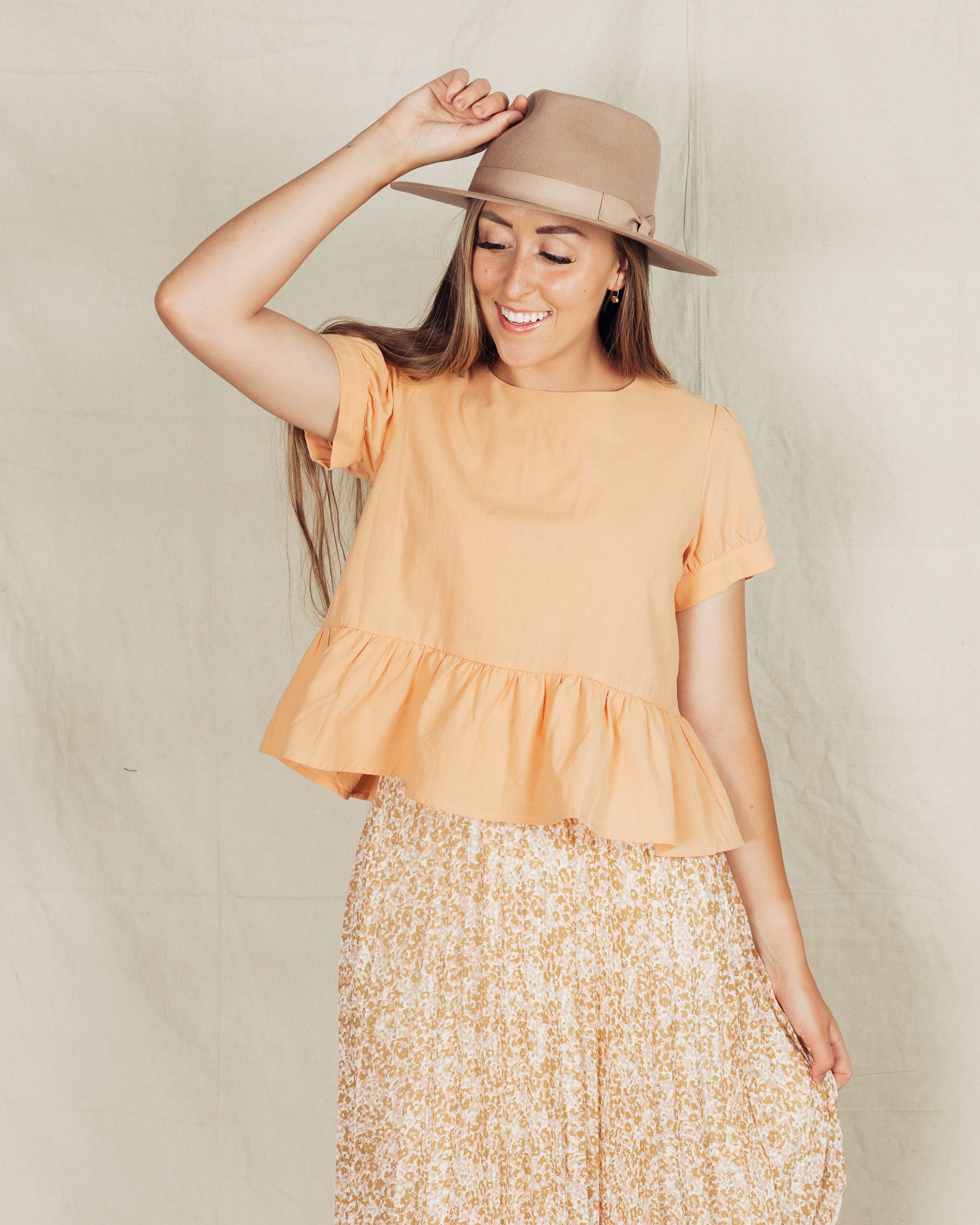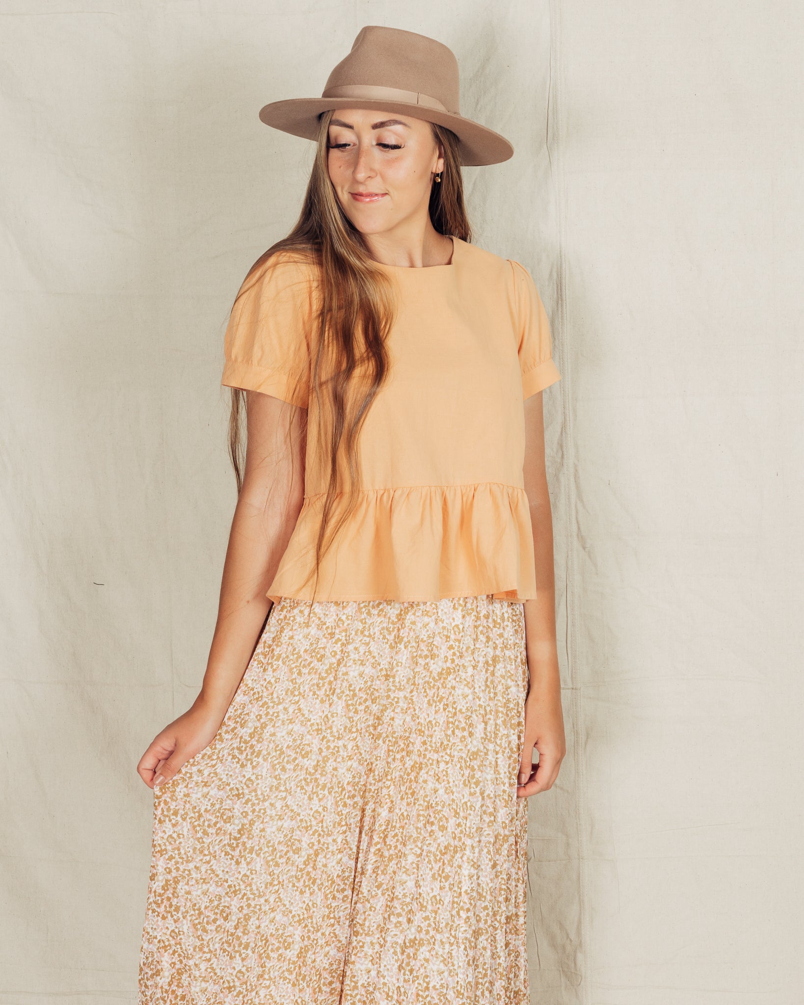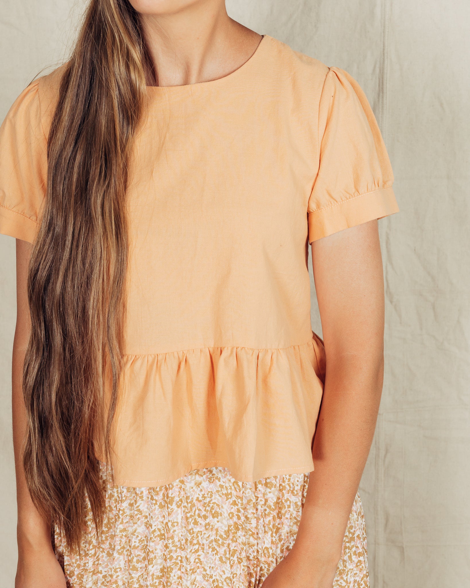 The Dani Top is a peplum top that fits a little oversized. The top half is lined, so it is non-sheer. I am 5'9" and wearing a size small. The fabric content is 100% cotton and the lining is 100% rayon.