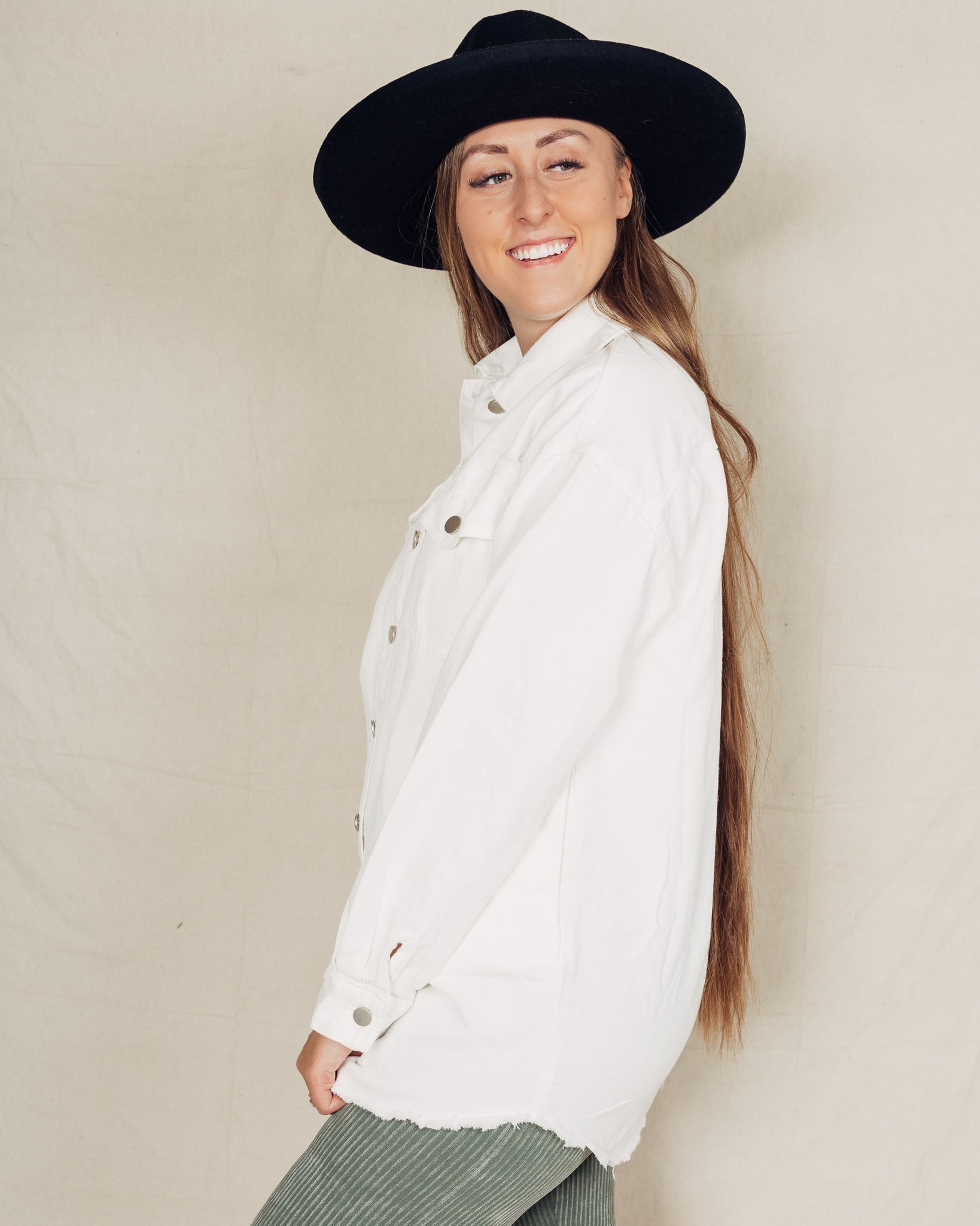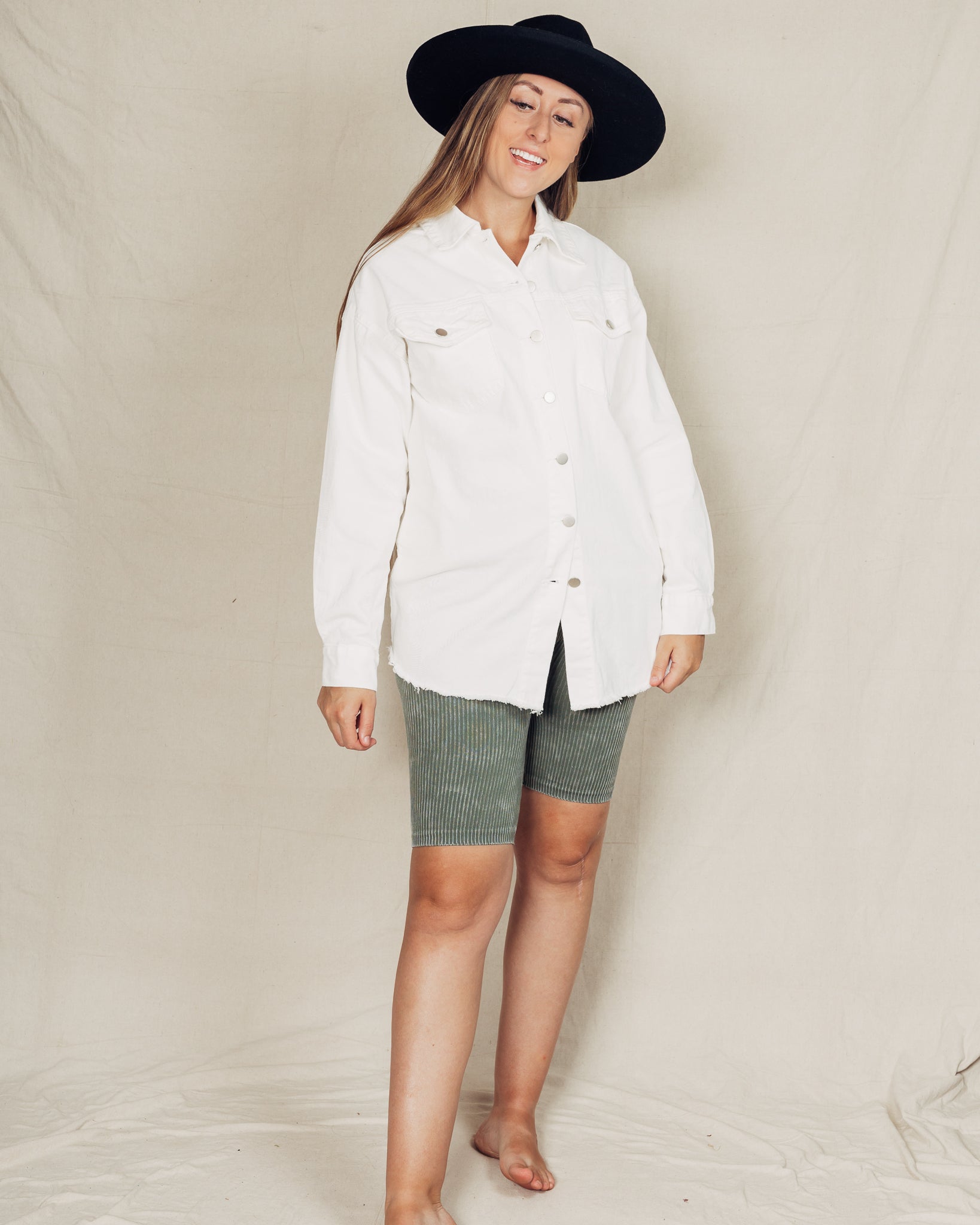 Denim Shacket || White