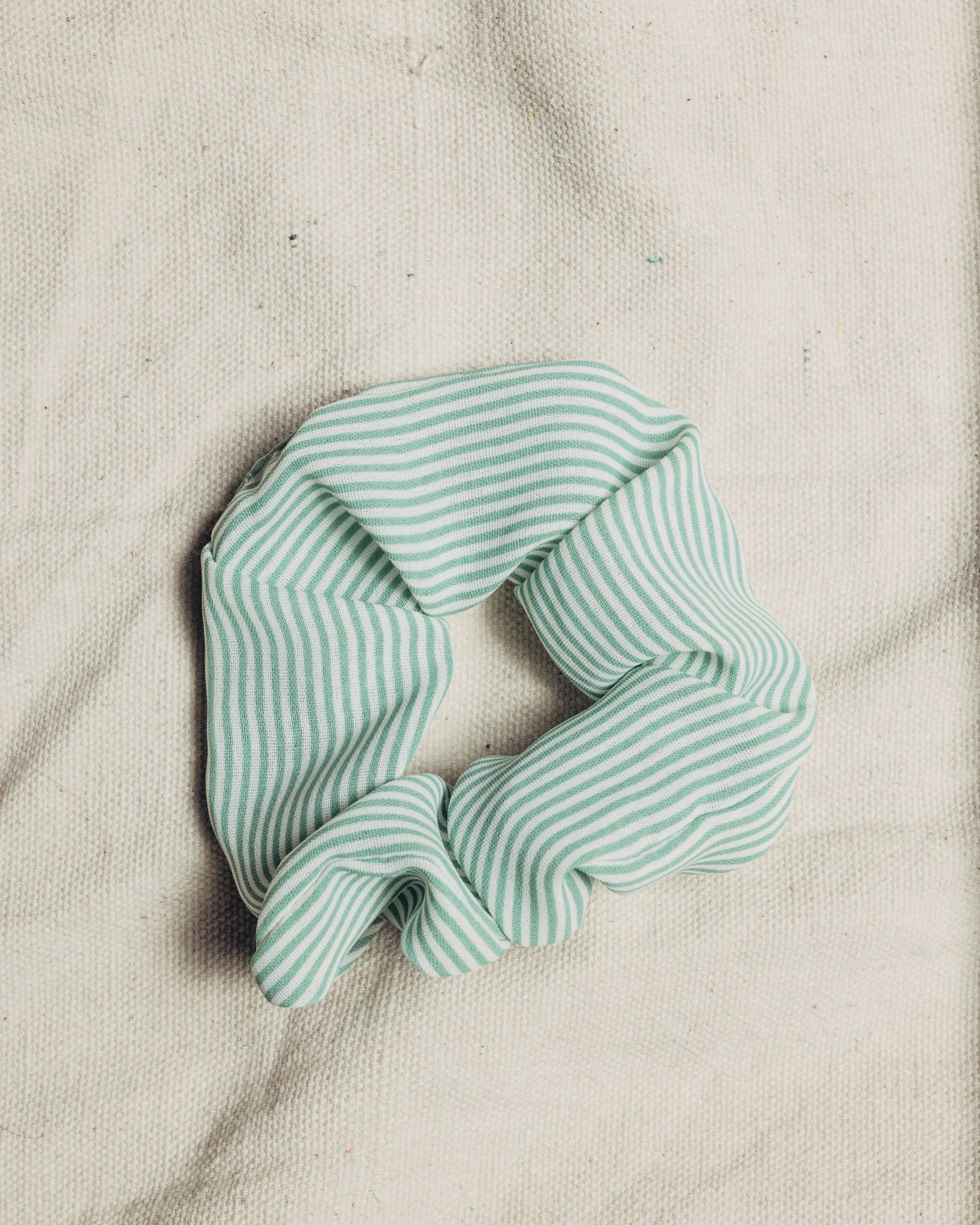 Green and White Striped Scrunchie