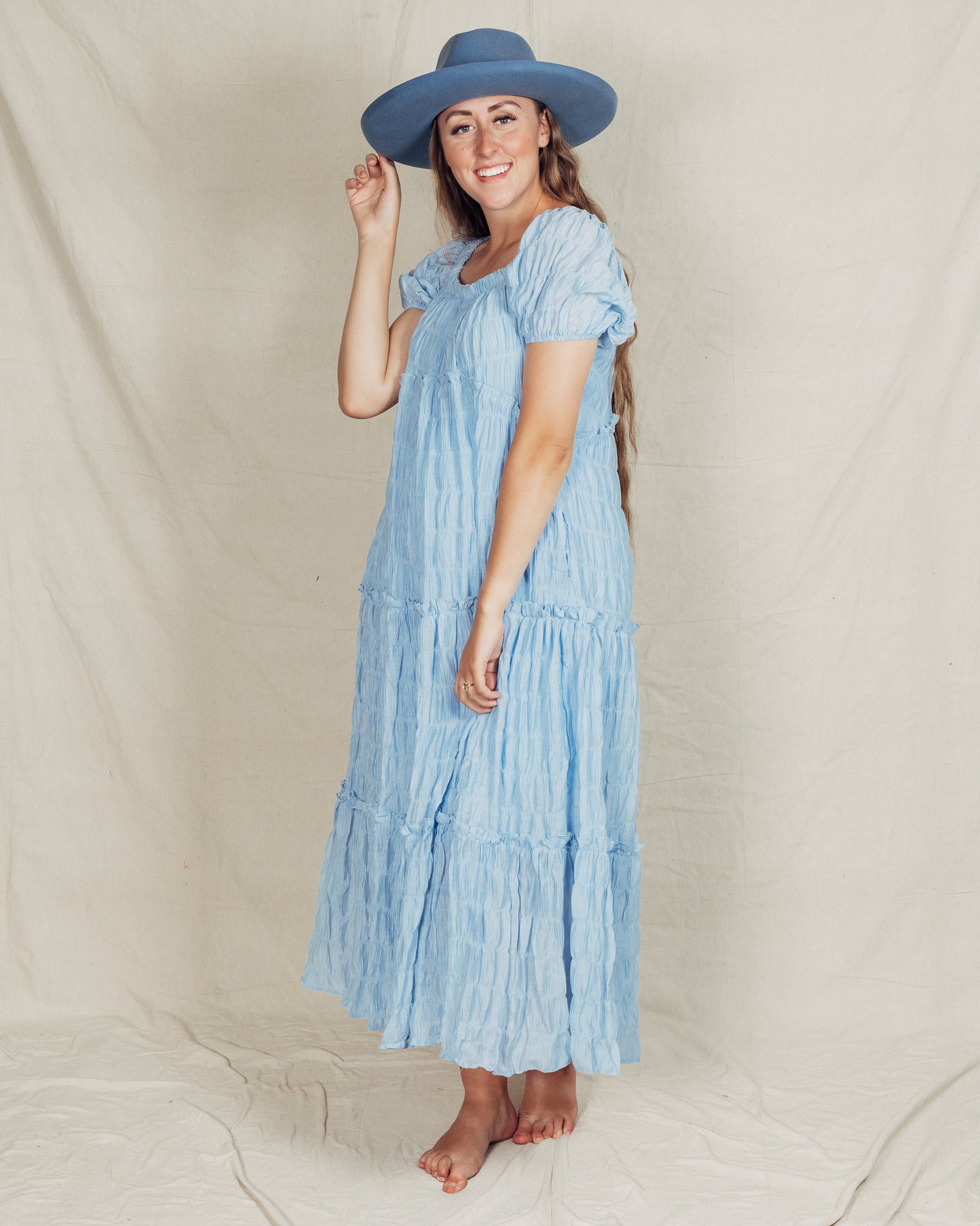The Han Dress is lightweight but also lined. It has an oversized fit to it, and the neckline is elastic and stretchy. I am 5'9" and wearing a size small. The fabric content is 100% polyester.