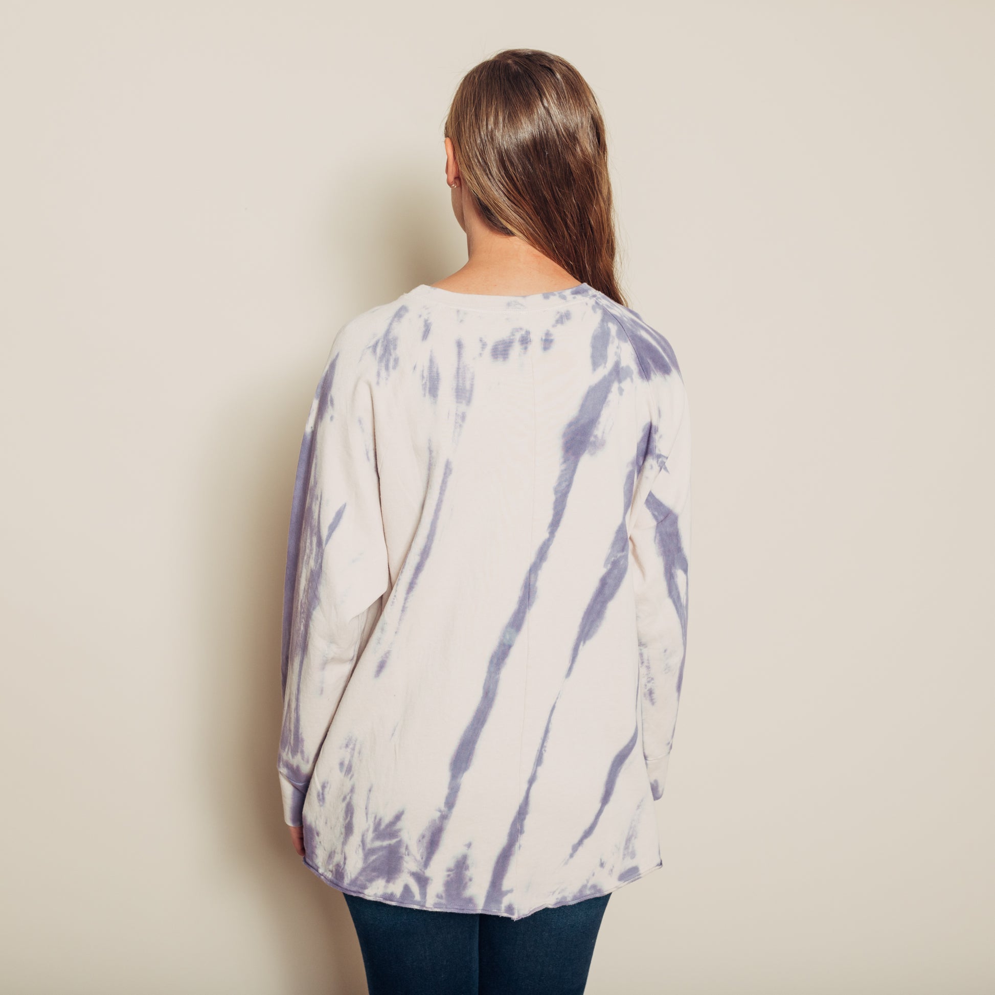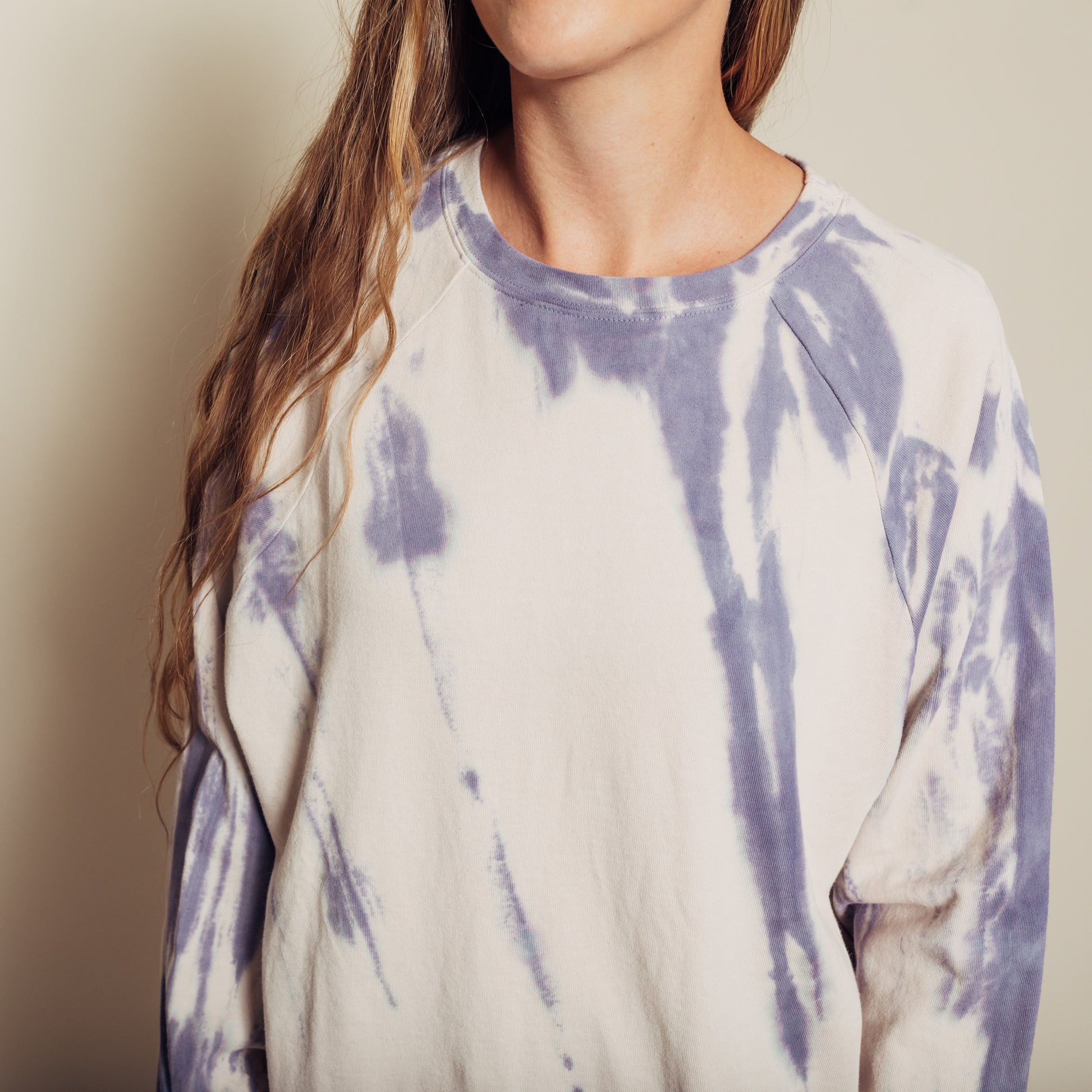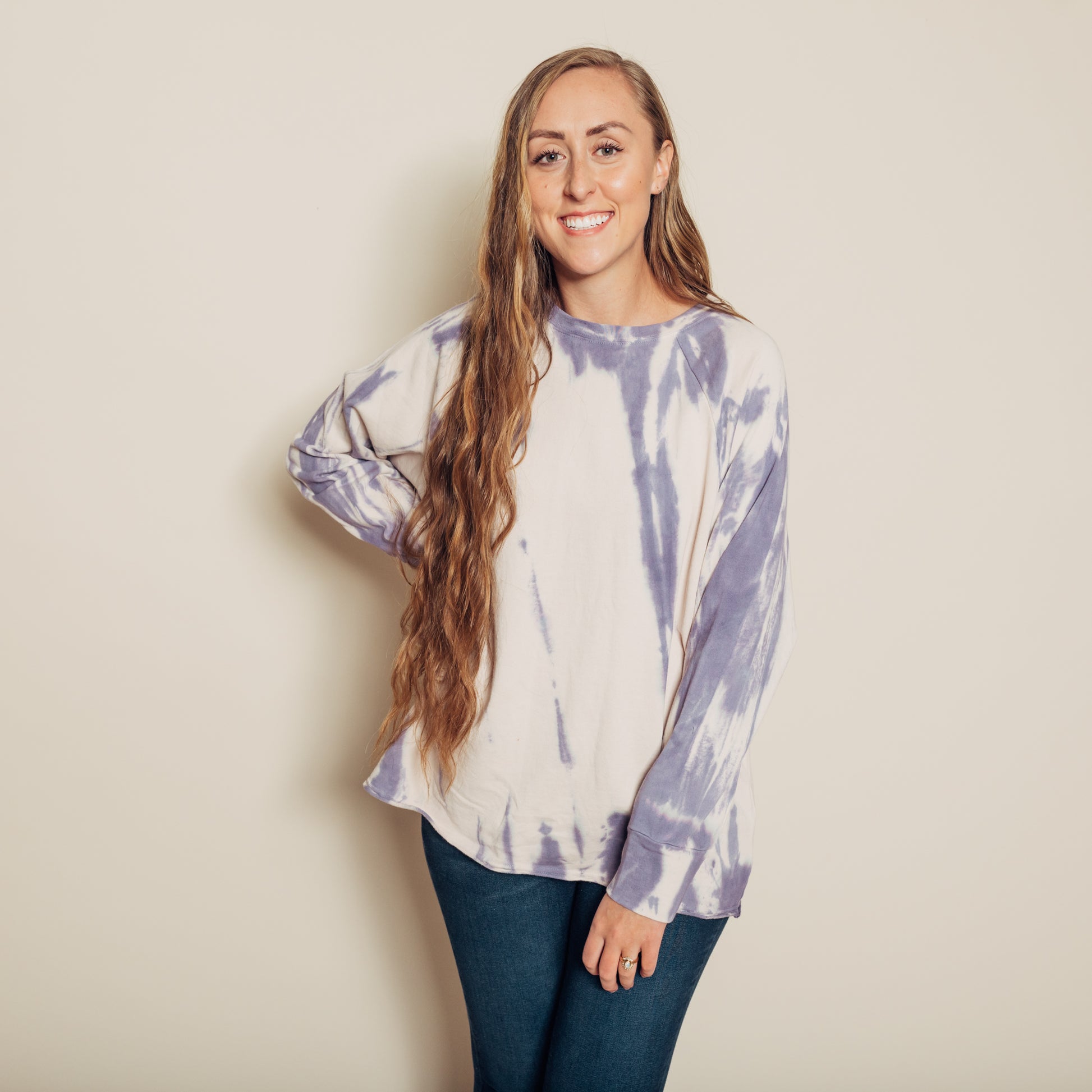 The Lily Top is right in between a sweatshirt and a tee. It's thicker than a tee but not quite as thick as a full sweatshirt. It will definitely keep you warm, and it's also super comfy! I am 5'9" and wearing a size small. The fabric content is 100% cotton.