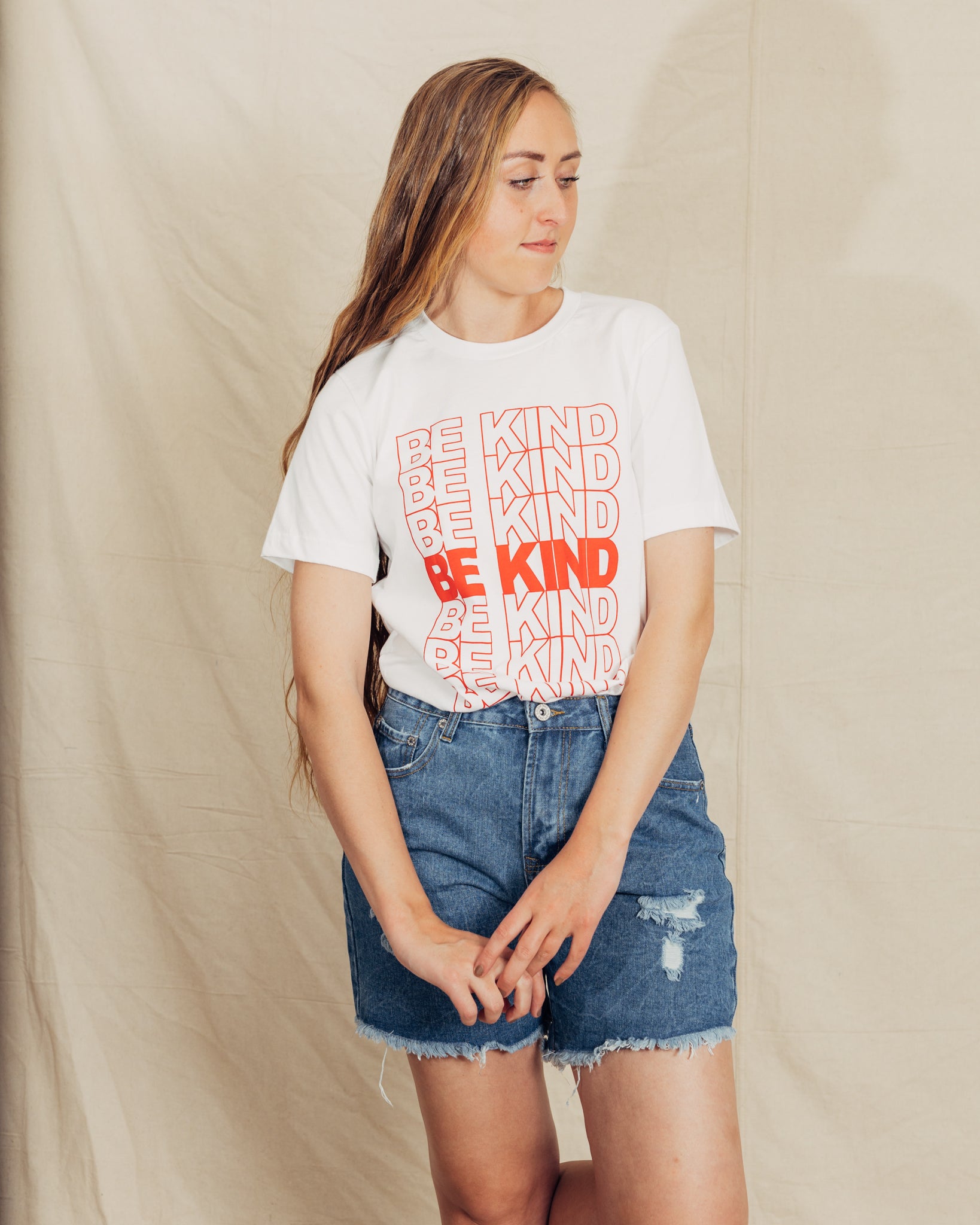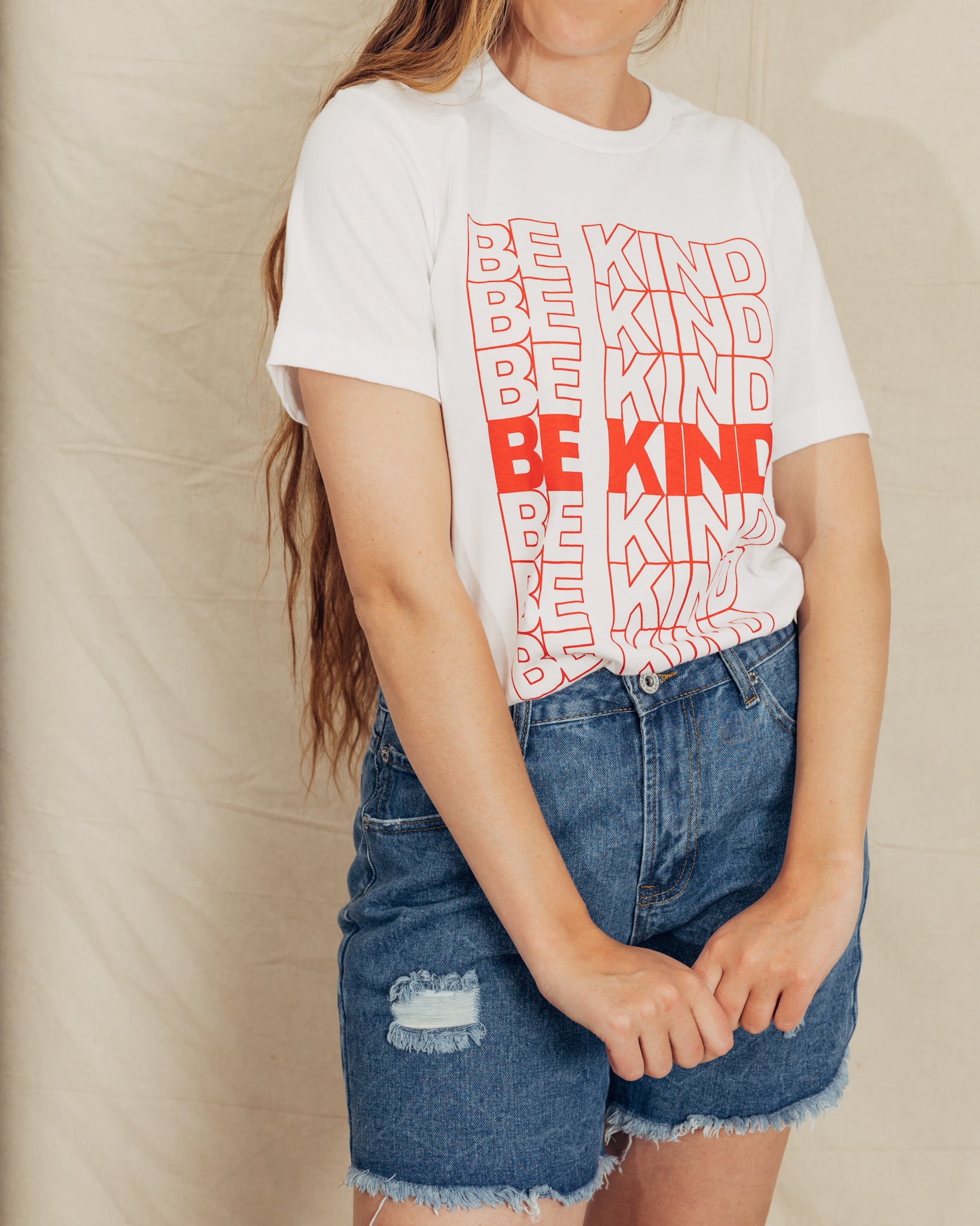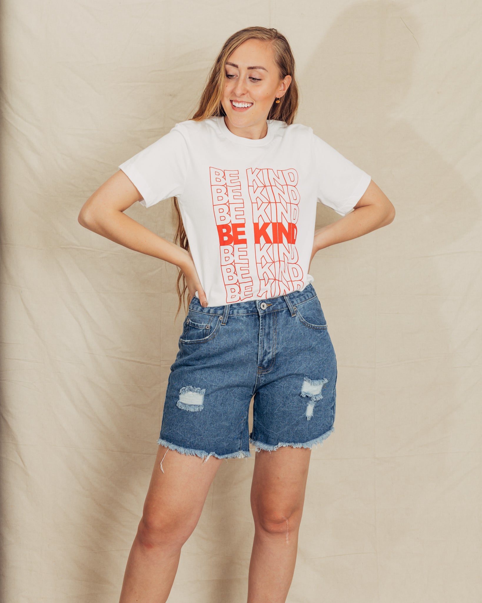 These shorts are the best for summer. I sized down in these shorts, but check the measurements! They are meant to fit oversized. They have distressing on them, and a raw edge hem. The pockets are also functional. I am 5'9" and wearing a size 3. The fabric content is 70% cotton 30% polyester.