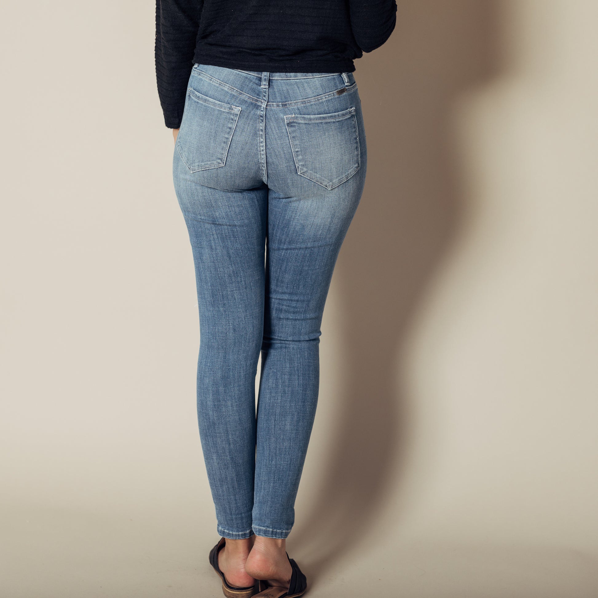 These jeans are awesome. They fit true to size, and are 89.7% cotton, 8.1% polyester, and 2.2% spandex. The front rise is 9.5″, and the inseam is 28.75″. I am 5’9″ and wearing a size 5. These jeans are stretchy, and they should not shrink when you wash them!