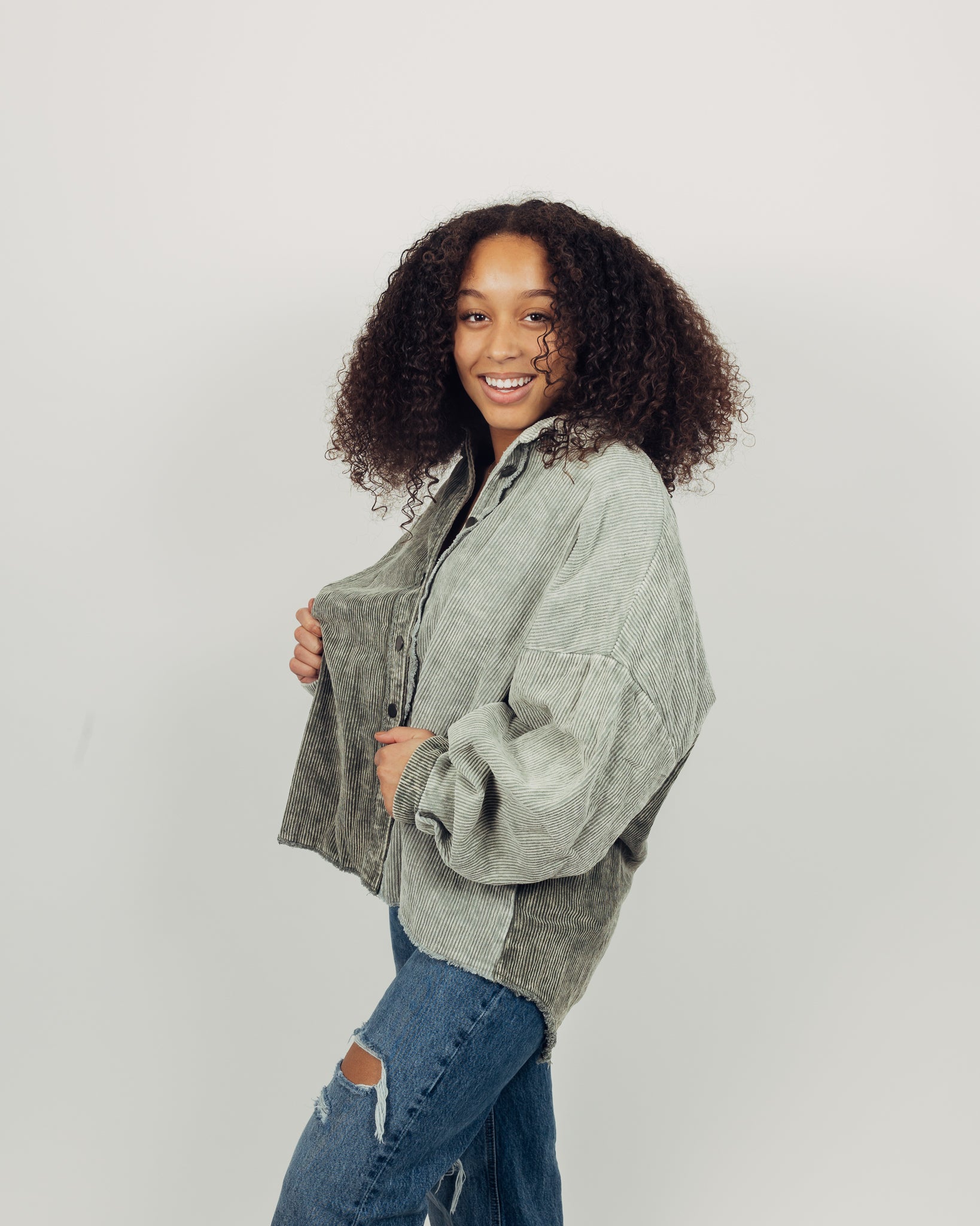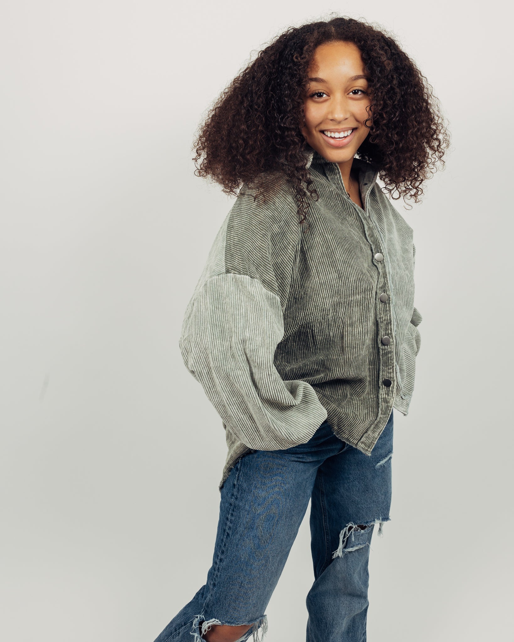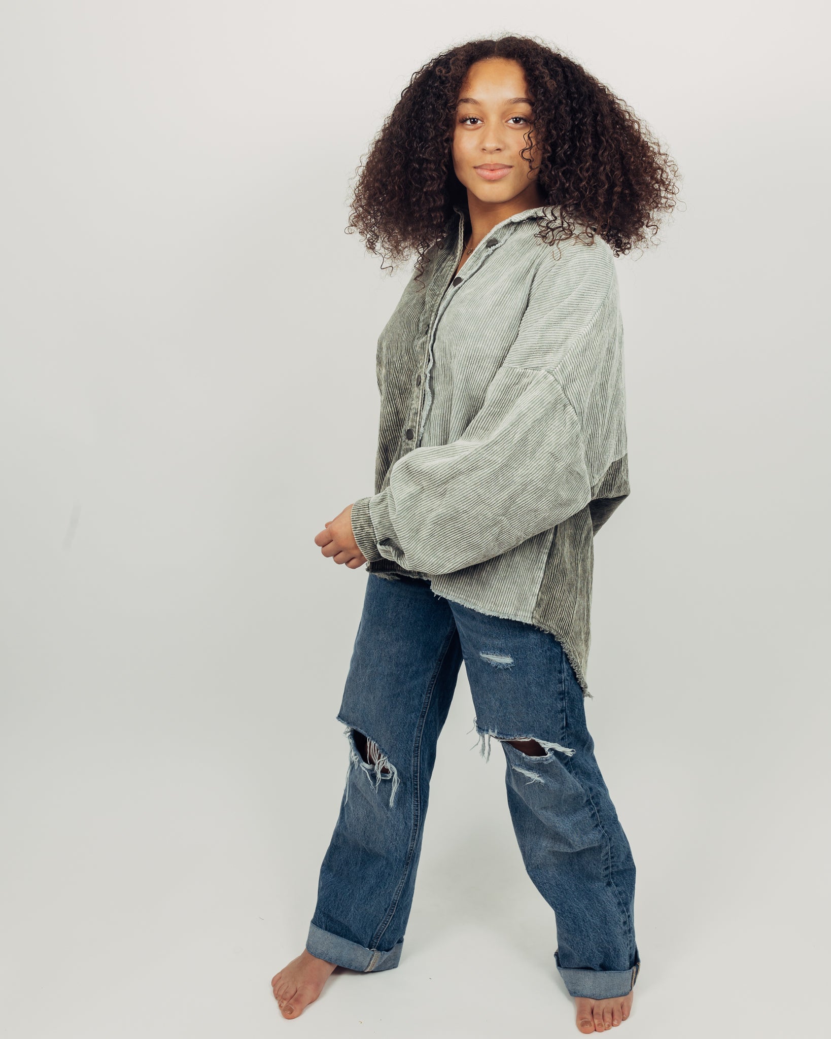 The Cass Shacket has the perfect slouch fit. The buttons are all functional, so wear this as a shirt or a jacket! Model is wearing a size small. The fabric content is 100% cotton.