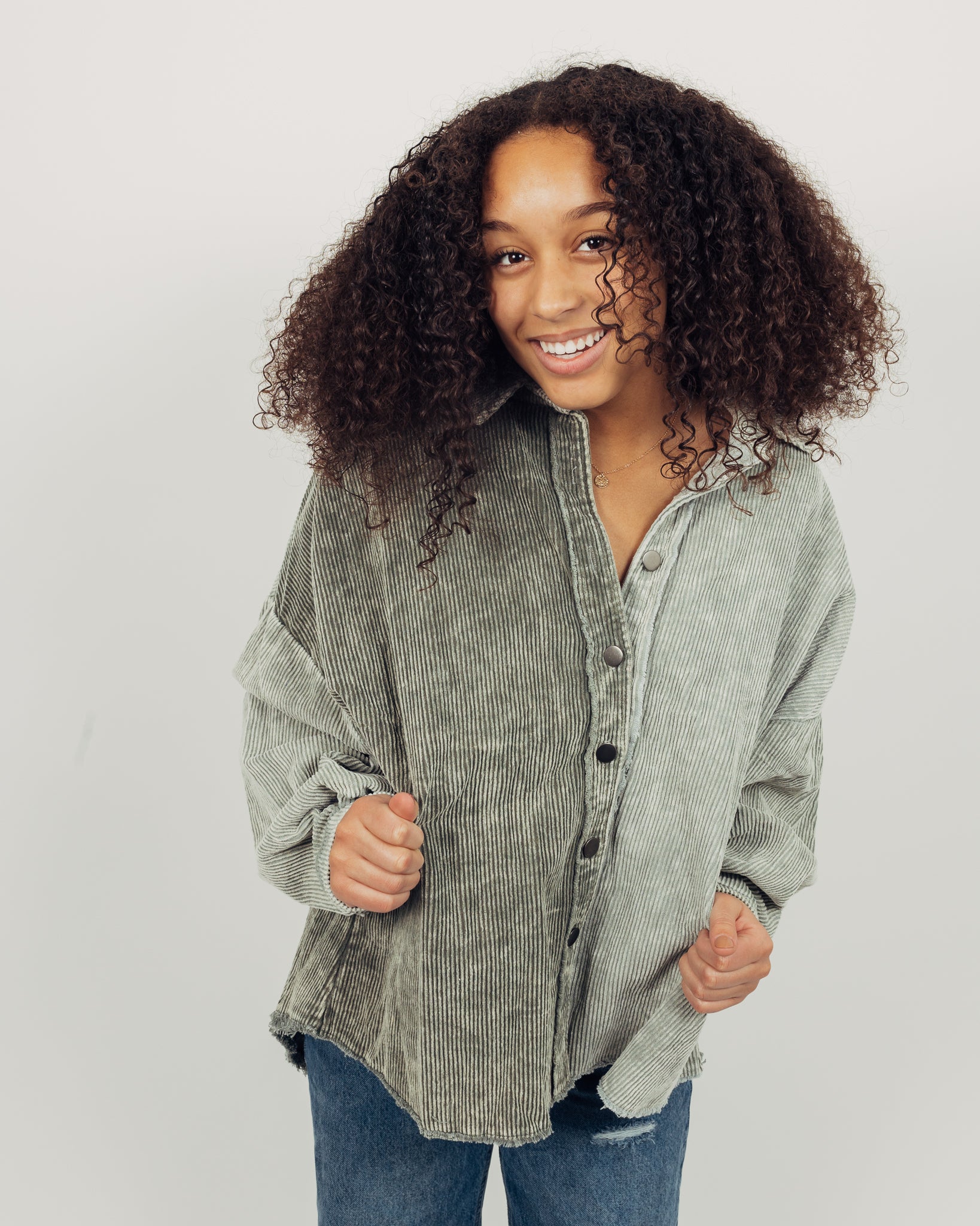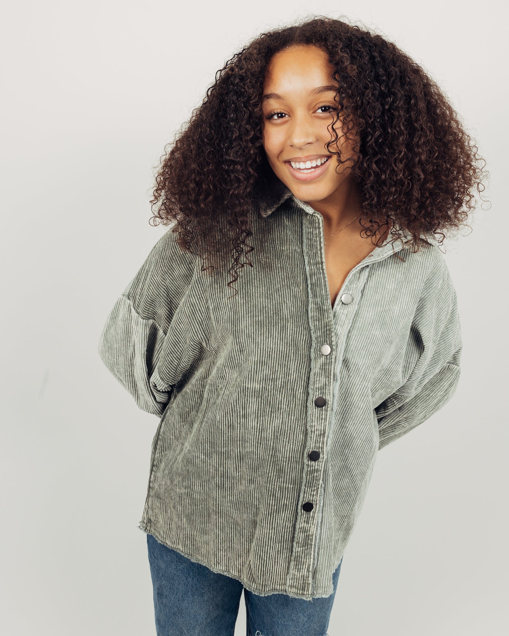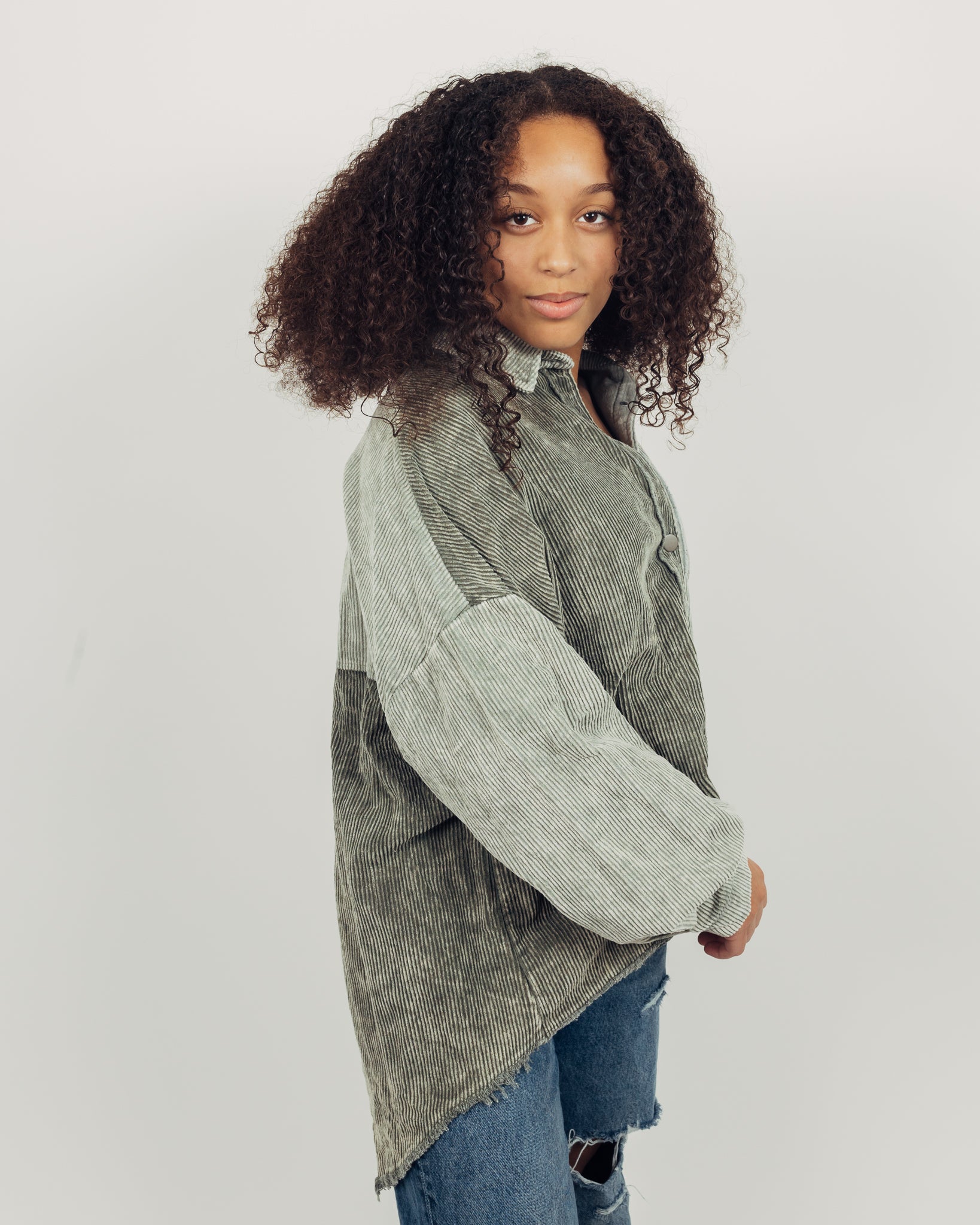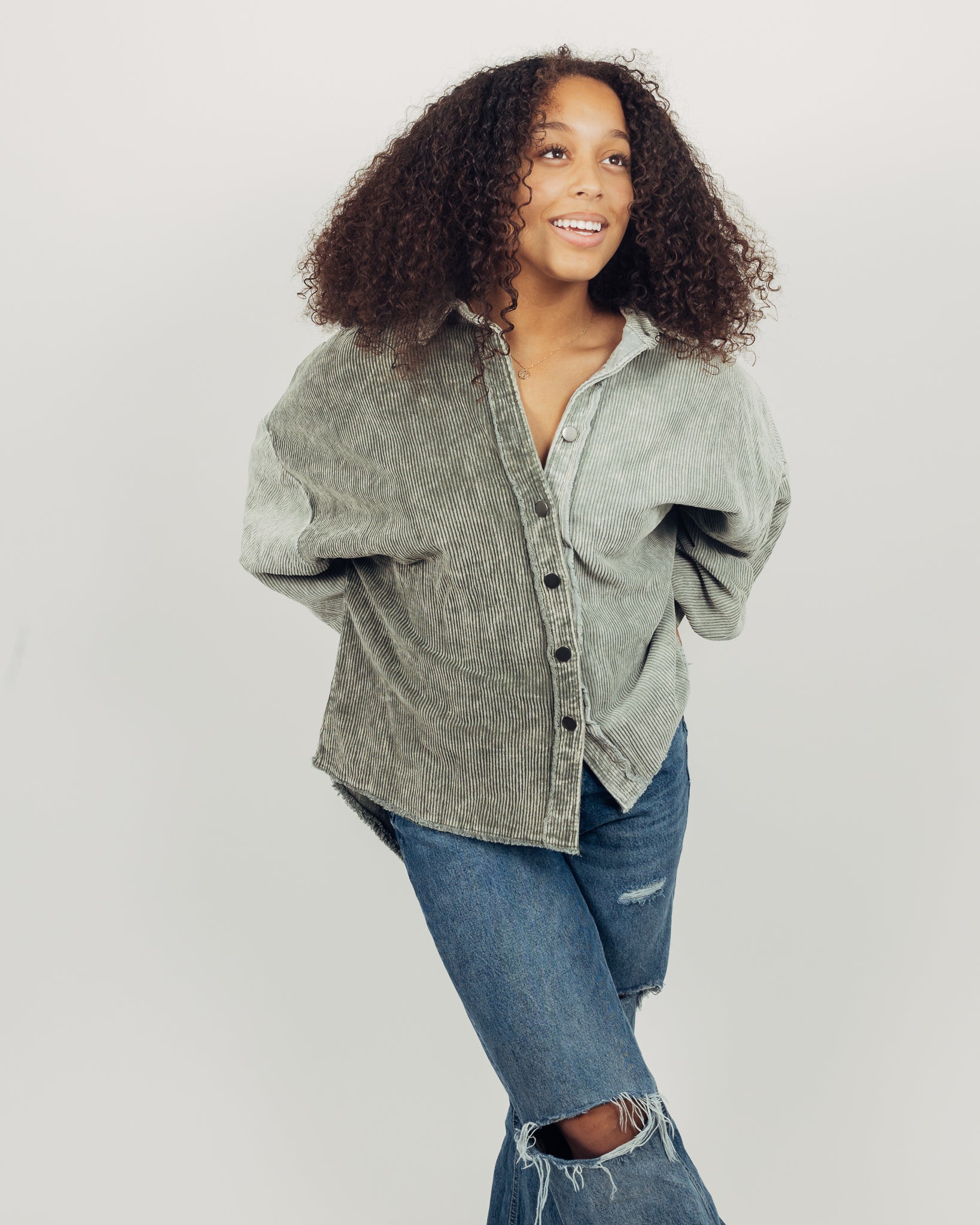 The Cass Shacket has the perfect slouch fit. The buttons are all functional, so wear this as a shirt or a jacket! Model is wearing a size small. The fabric content is 100% cotton.