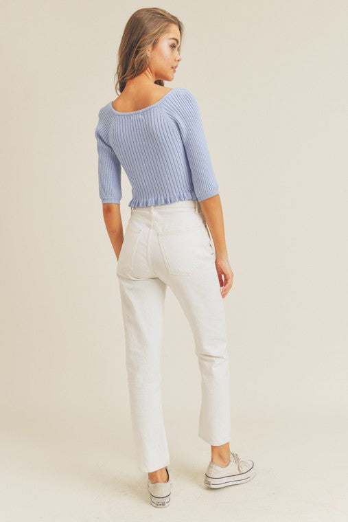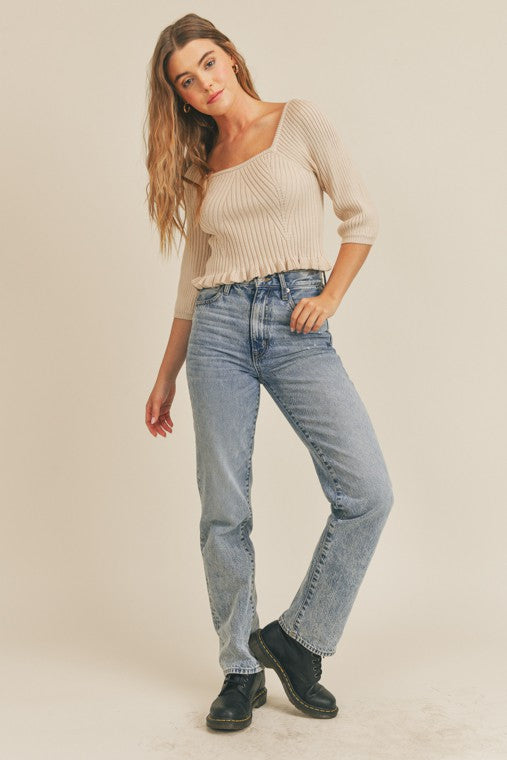 Elevate your casual style with the "Rib Knit Top." Crafted with a ribbed texture, this top adds depth and dimension to your outfit while providing a snug yet comfortable fit. Whether paired with jeans for a laid-back look or dressed up with accessories, its versatile design ensures a chic and effortless appearance for various occasions.