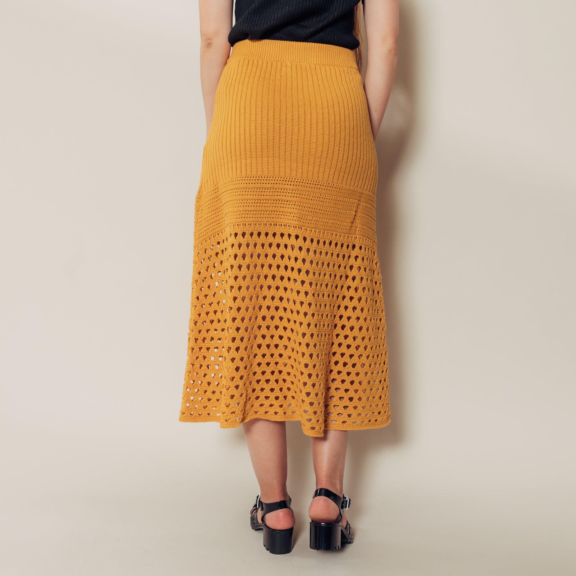 The Syd Skirt is super unique! It's basically a crocheted skirt, and I am in love. It's stretchy, thick enough to not be see through, and it has such fun details. The bottom 15" does feature open holes in the crochet. I am 5'9" and wearing a size small. The fabric content is 100% cotton.
